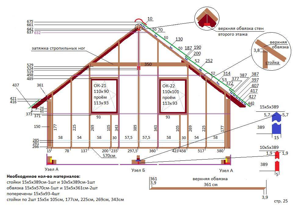 Чертежи каркасных домов для постоянного проживания содержат следующую информацию:
