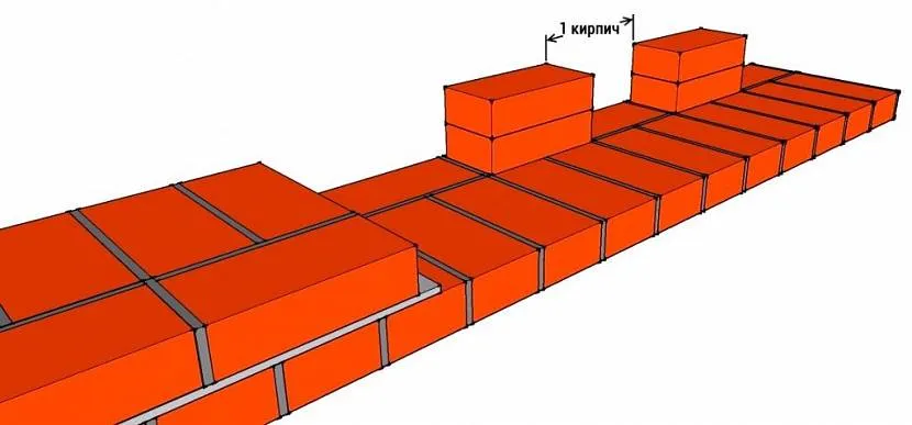 - тычковые ряды предусматривают расположение кирпича короткой стороной поперек стены.