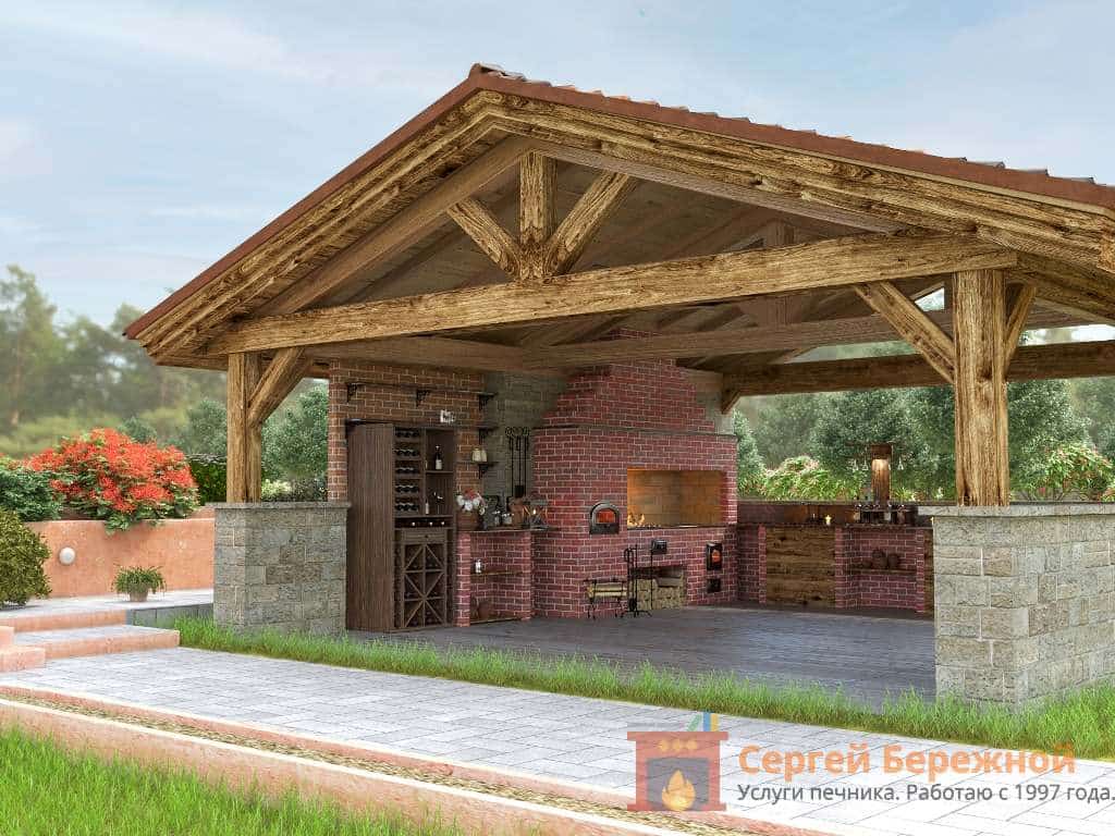 Вот здесь уже начинается мыслительный процесс: «А нужен ли, вообще, мне подобный комплекс? Не достаточно ли мангала, чтобы шашлык пожарить? Может быть, на машину отложить…». Примерно в таком формате мыслят люди, бюджет которых ограничен. Подобное строительство обходится сравнительно дорого для беседки, где периодически на выходных собираются люди для отдыха.