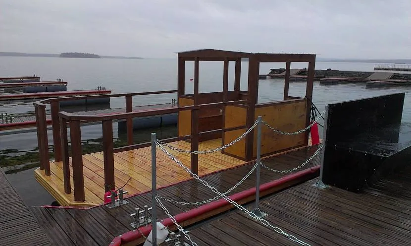 Сезонные домики на плаву для рыбалки, изготовленные из натурального дереваИсточник pirs.spb.ru