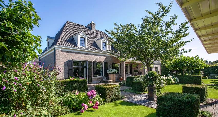 Фасады домов из кирпича увиты плющом, клумбы хаотично разбросаны по участку, соседствующие с деревьями кустарники сливаются в зеленый оазис – вот характерные черты дизайна.