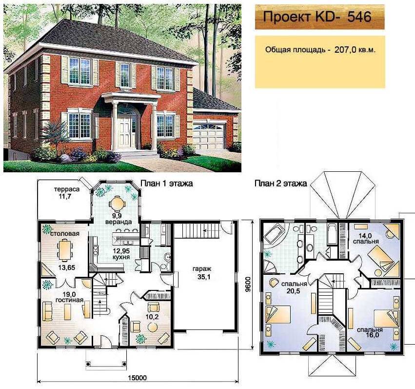 Самой практичной можно назвать двухэтажную постройку в английском стиле. Она подходит для большинства участков и имеет привычную планировку. Как правило, на первом этаже размещаются: