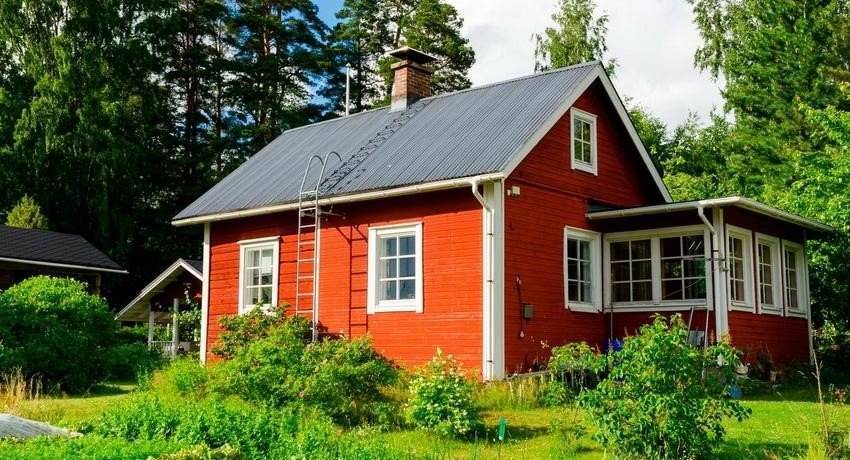 - Главной особенностью финского дома является двускатная крыша, которая не позволяет снегу и воде застаиваться, а значит, исключается возникновение грибка и сырости. Крыша должна защищать и материал, которым делалась отделка дома.