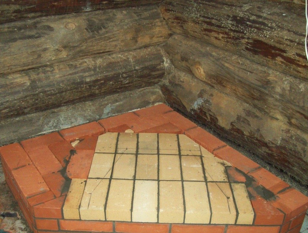 На основание укладывают лист оцинкованного металла. Затем делают гидро- и теплоизоляцию. Дополнительно используют шамотные плиты, чтобы защитить основание топки от растрескивания. Вместо них делают кладку из тугоплавкого огнеупорного кирпича.