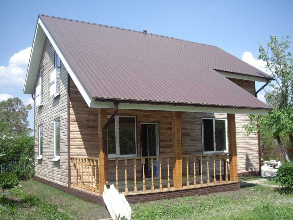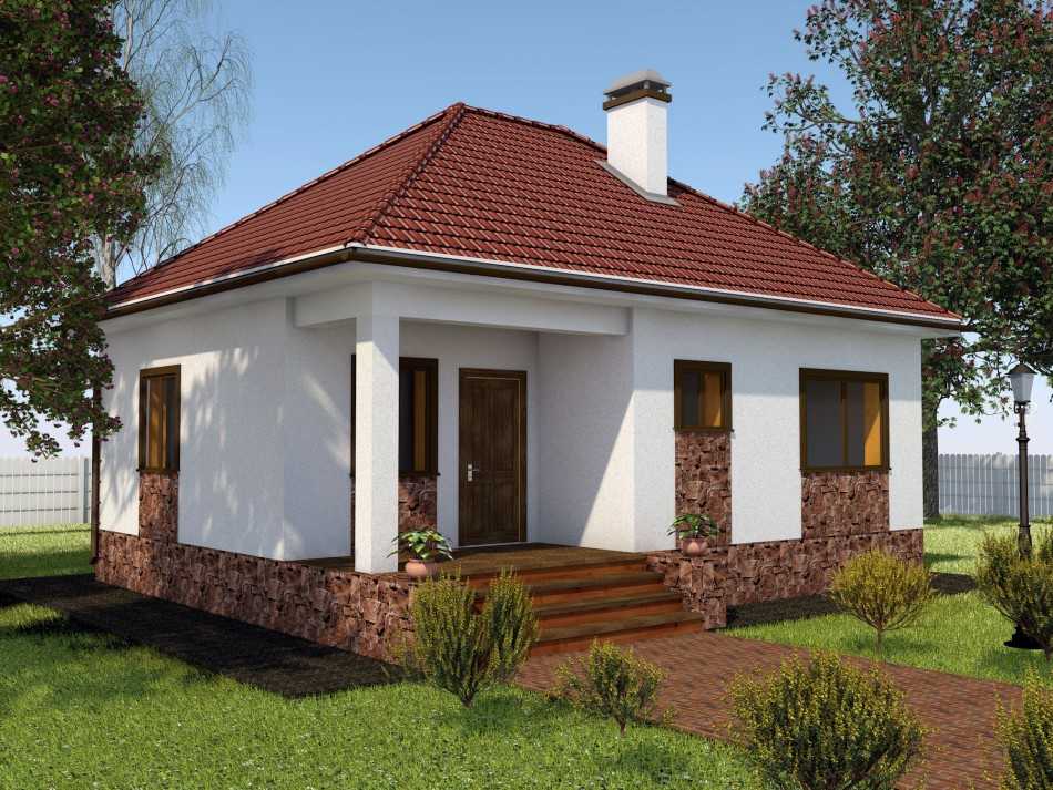 Это наиболее оптимальный и недорогой вариант небольшого загородного дома, предназначенного для временного проживания. В типовых проектах таких сооружений чаще всего заложена односкатная крыша.