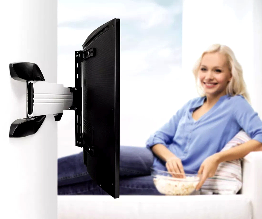 Помимо изменения наклона и поворота экрана такой кронштейн также позволяет изменять расстояние телевизора до стены. Это весьма удобно, когда ТВ устанавливается на кухне, в очень большой комнате или между смежными комнатами.