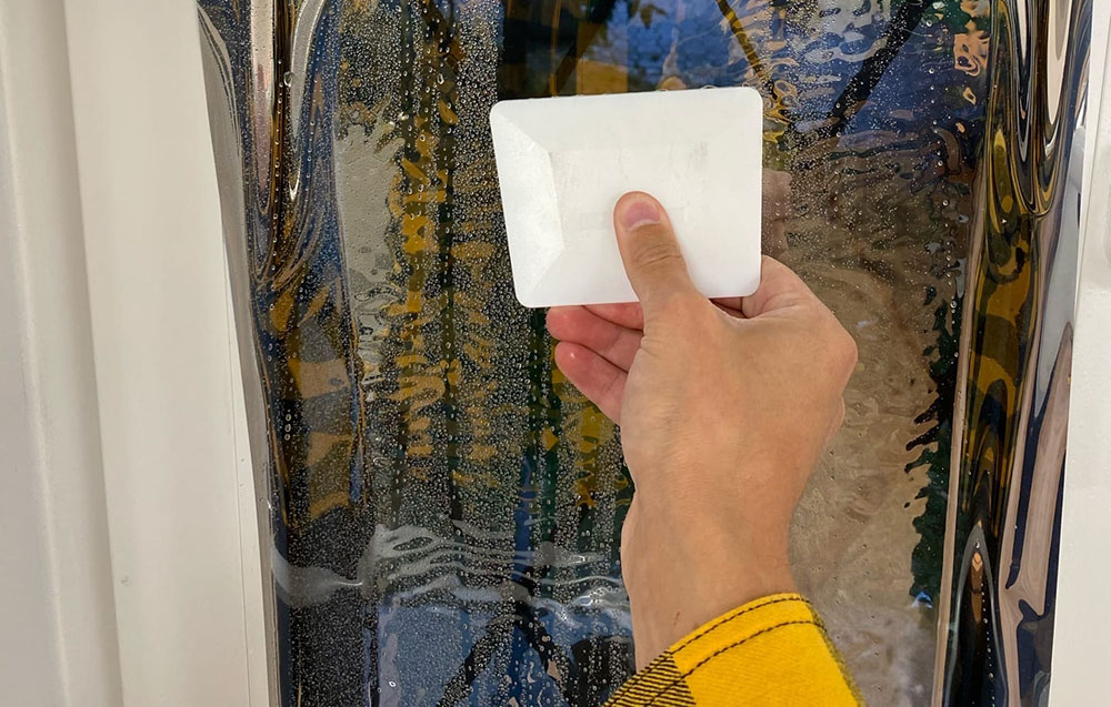 Этап №3: наклеивание плёнки на стеклянную поверхность