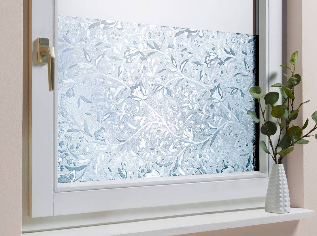 Вымойте окно. Плёнку раскроите с небольшим припуском по краям. Снимите с верхней части заготовки защитный слой и приклейте её к стеклу. Распределите плёнку по периметру проема и разгладьте от центра к периферии.