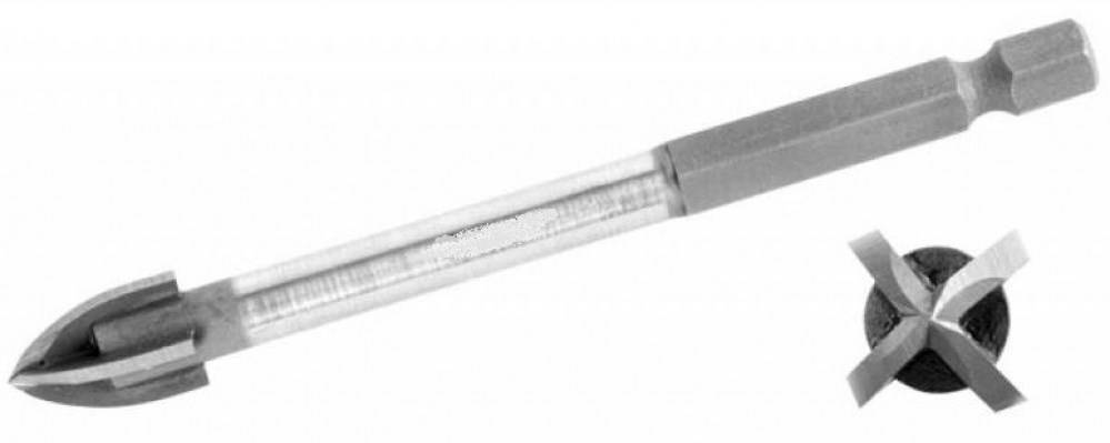 Копьевидный наконечник из твердого сплава имеет особый профиль, предназначенный для сверления стекла и керамики, на бетоне он быстро тупится и приходит в негодность, а при работе с керамогранитом, его хватит на 4 — 5 отверстий.
