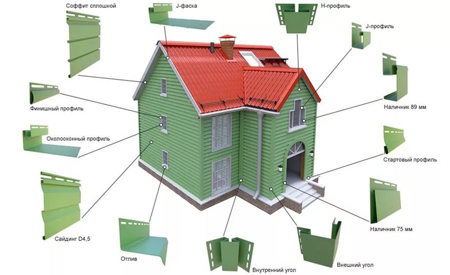 Кроме основного покрытия — панелей металлосайдинга — требуется приобрести комплектующие материалы для полного оформления облицовки: