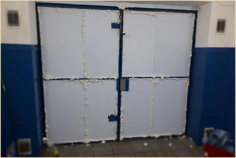 Производство двери ничем не отличается от изготовления секций. Трудности возникают в том, что сама створка должна быть обшита стальным листом. А если нужно сделать дверной проем, то его нужно оставить открытым, а остальное покрыть сталью.