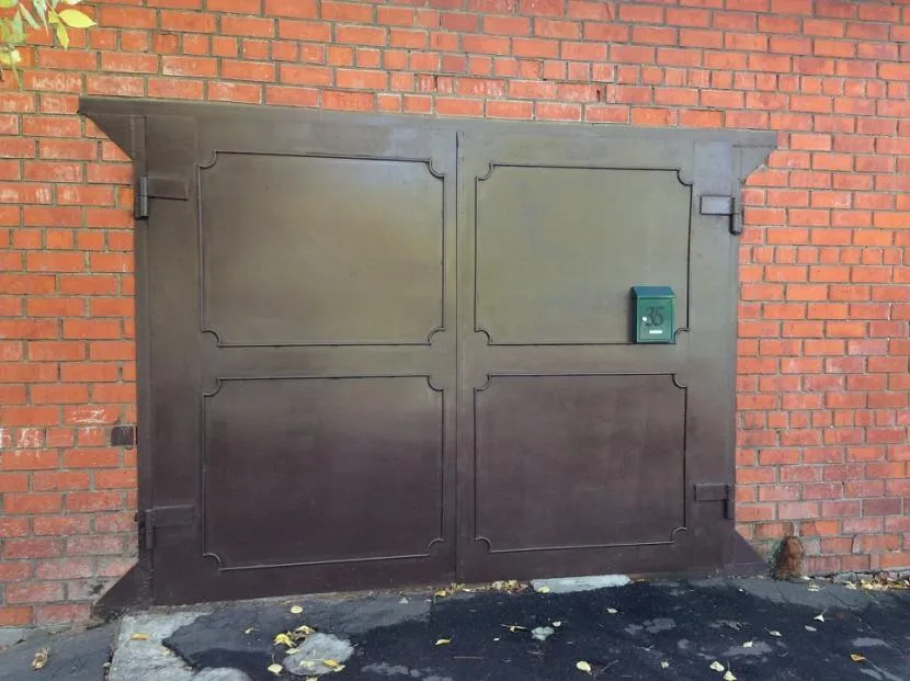 - В готовом гараже изготавливают створки по габаритам проема, устанавливают раму и крепят полотна.