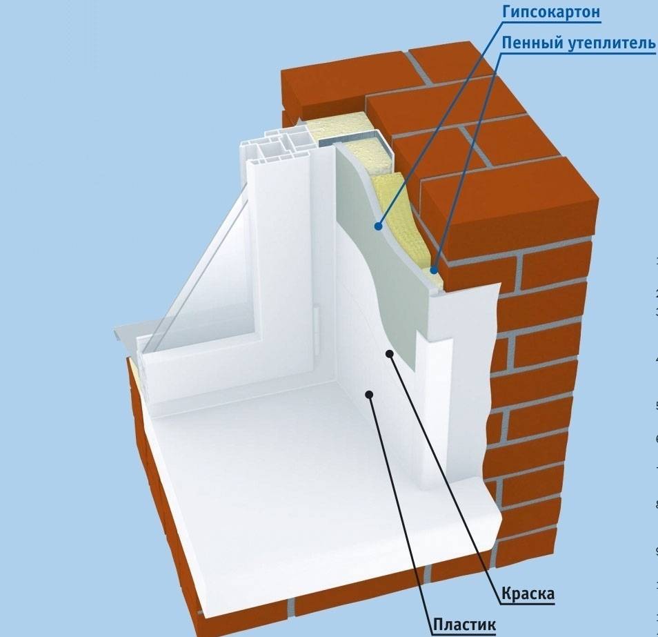 Также проводниками холода могут стать откосы. Для теплоизоляции боковые поверхности шкурят, затем грунтуют и устанавливают ПВХ панели. Если внутри образовались пустоты — необходимо заполнить их паклей или пенополиуретаном.