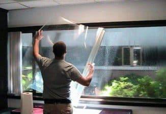 Процесс монтажа пленки несложный, но требует аккуратности, ведь важно наклеить ее ровно, без пузырьков, металлизированной стороной наружу. Лучше всего работать в перчатках, чтобы не оставить на поверхности жирных следов