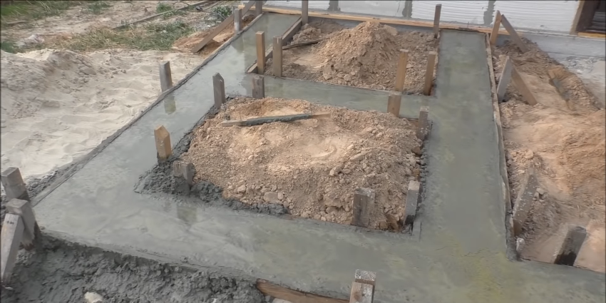 После заливки фундамента бетоном его периодически смачивают водой до полного становления, это необходимо для равномерного затвердения фундамента.