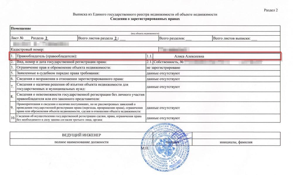 - В первой указываются данные относительно государственного органа, предоставившего документ, сюда же входит информация о кадастровом номере. Здесь же вы можете найти все данные по собственнику, размерам участка в квадратных метрах.