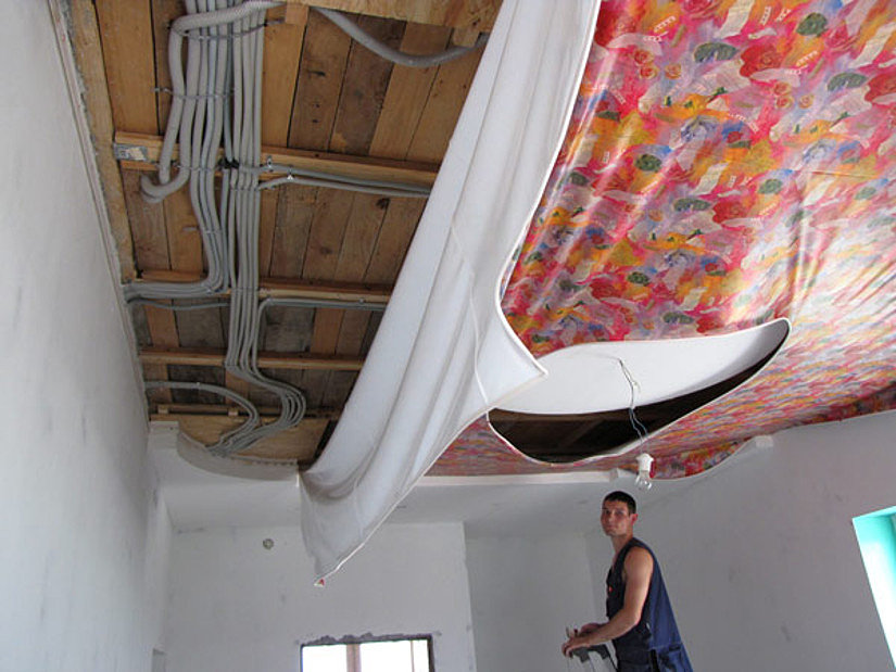 Для предотвращения неприятной ситуаций в период эксплуатации рекомендуется до начала монтажных работ найти проводку на полотке. В противном случае через определенный период времени придется демонтировать полотно.