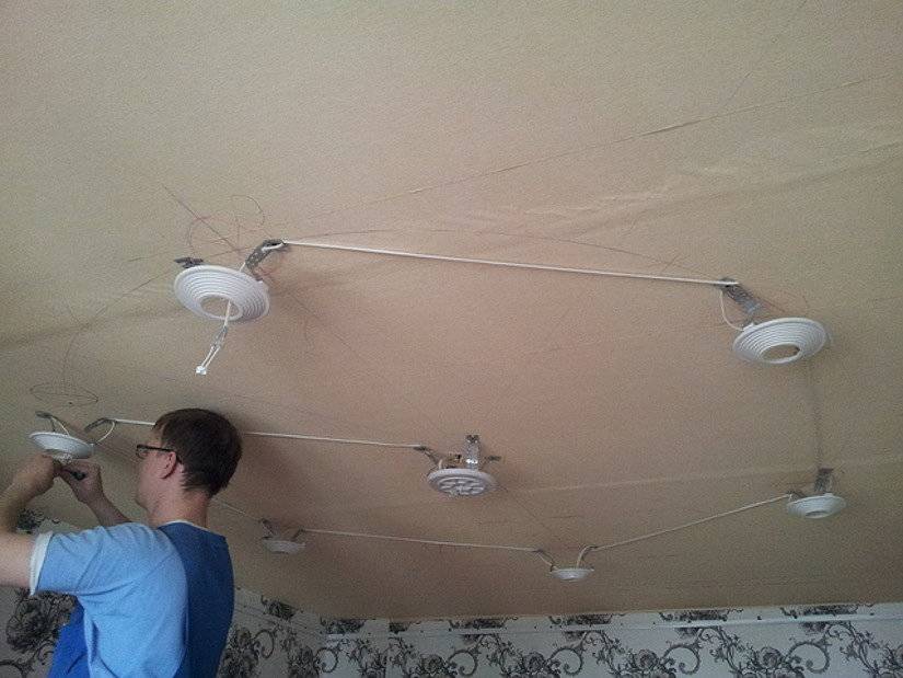 Рис.1. Монтаж и подготовка проводки под натяжной потолок