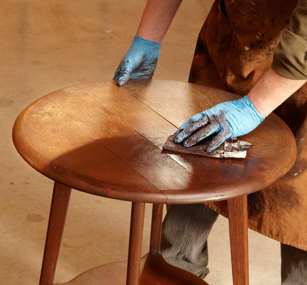 После сборки и внешнего осмотра, приступают к тонировке – нанесению лака и иных покрытий. Если реставрируемая мебель очень старая, то наносить лак лучше кистью, это позволит соблюсти историческую достоверность.