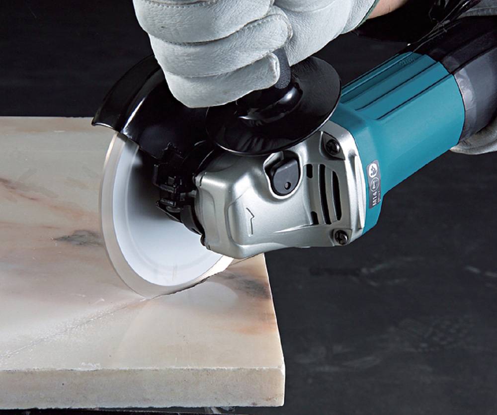 Для ее применения при облицовочных работах надо приобрести алмазный диск, что позволяет применять этот универсальный инструмент для резки кафеля как по прямым, так и по фигурным линиям. По сравнению с электрическим резчиком плиток, болгарка более мобильна, но по качеству среза проигрывает ему. После резки кафеля этим инструментом надо зачищать срезы напильником или шкуркой. Используют болгарку так: