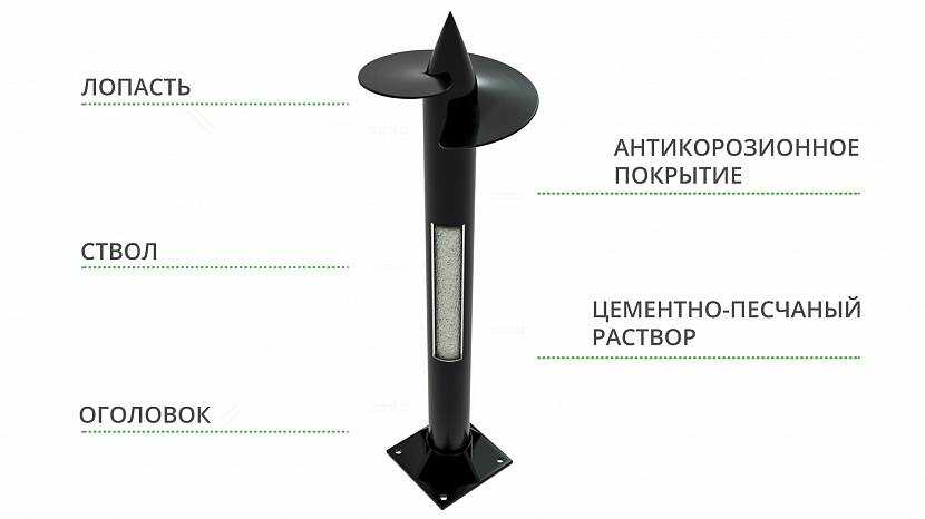 Внутри тела винтовой сваи – полостьТело или ствол – пустотелая труба определенного диаметра с установленной толщиной стенки.
