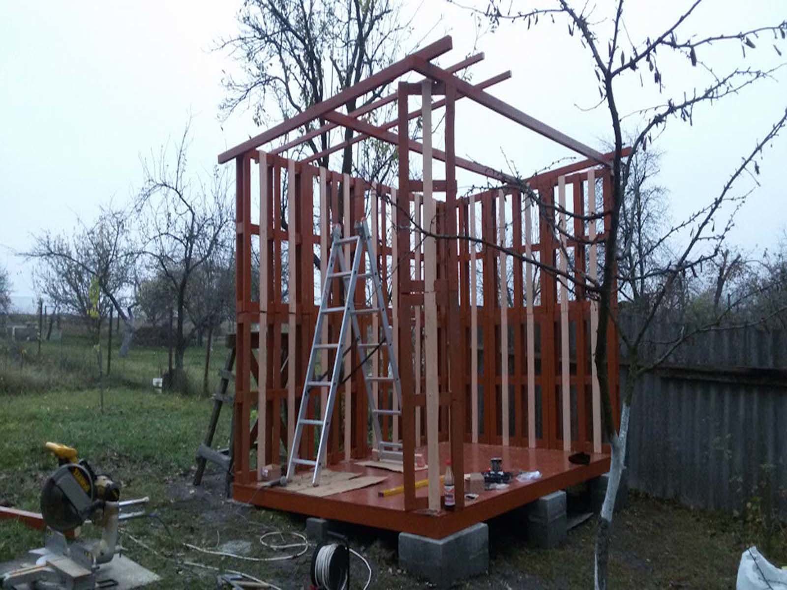 «По науке» стропила нужно было бы еще расклинить распорками и раскосыми, но их высота и длинна незначительны, а потому этой мерой можно и пренебречь, сразу же приступив к обрешетке.