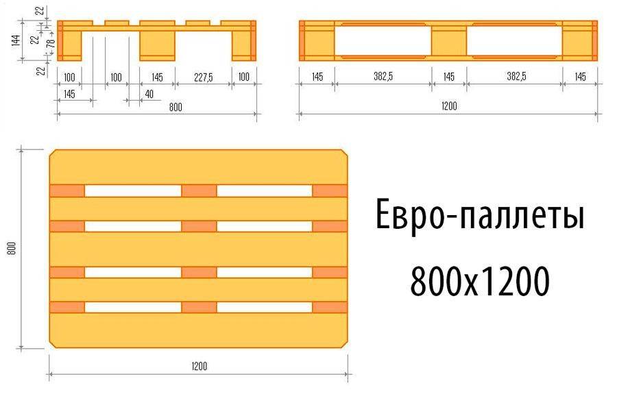 - В Европе используется практически одного размера паллета размером 800х1200 мм.