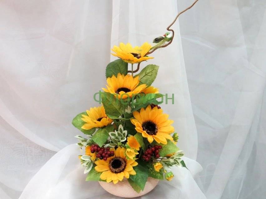 При создании композиции из искусственных цветов нужно учитывать и общий интерьер комнаты