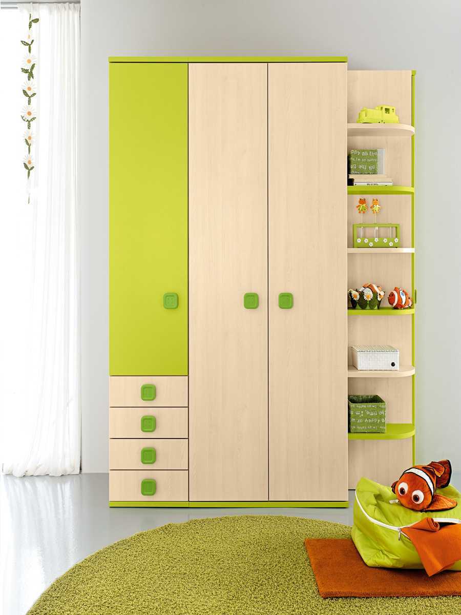 Такой шкаф нельзя купить готовым, он будет выполнен под размер определенной нише. Это дает возможность выбрать фасады и полочки исходя из потребностей и дизайн-проекта детской.