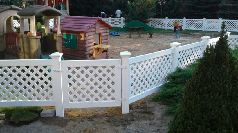 Хоть детская площадка устраивается рядом с домом, никто не отменял риск исчезновения ребенка. Чтобы свести соответствующий риск к минимуму, детская площадка своими руками для дачи должна располагать ограждением в виде: