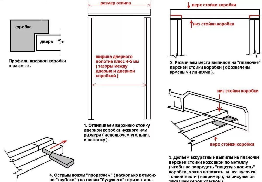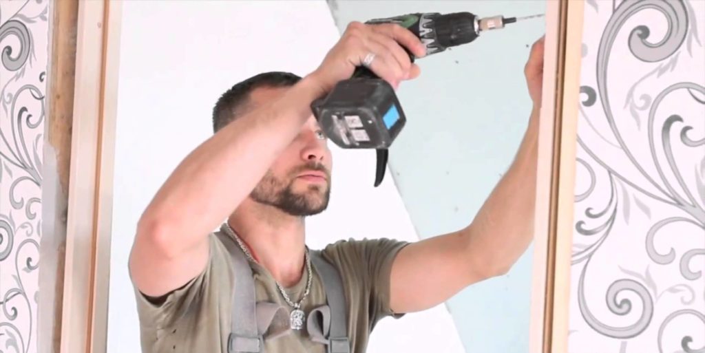 - вмонтировать короб в дверной проем, подгоняя все величины с помощью отвеса и уровня;