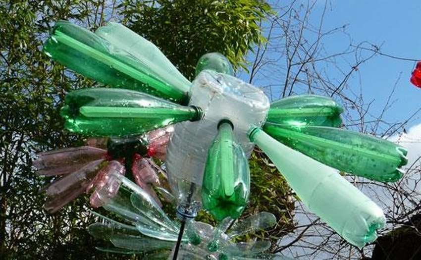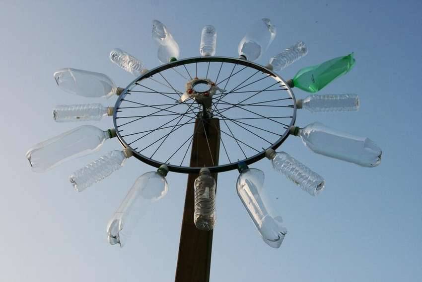 В конечном итоге можно создать флюгер даже из, казалось бы, неподходящих вещей, например, из пластиковых бутылок, одноразовых стаканчиков или из компакт-дисков.