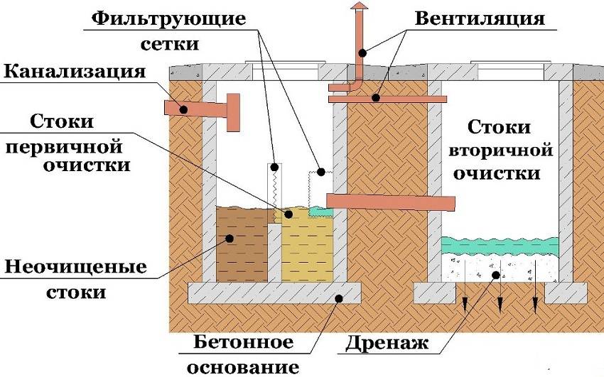 Септик состоит из двух емкостей, а принцип его работы таков: