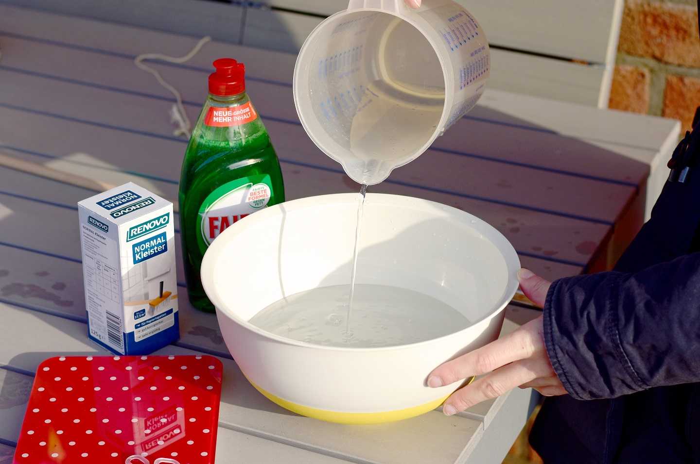 - Смешиваем клей и воду в клеянке в соотношении 1:1.