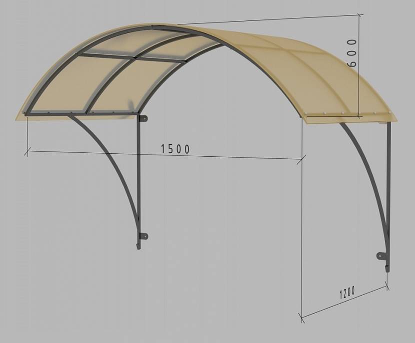 Купольные козырьки напоминают арочные, но отличаются более сложной конструкцией. Они представляют собой полусферу, прикреплённую к стене.