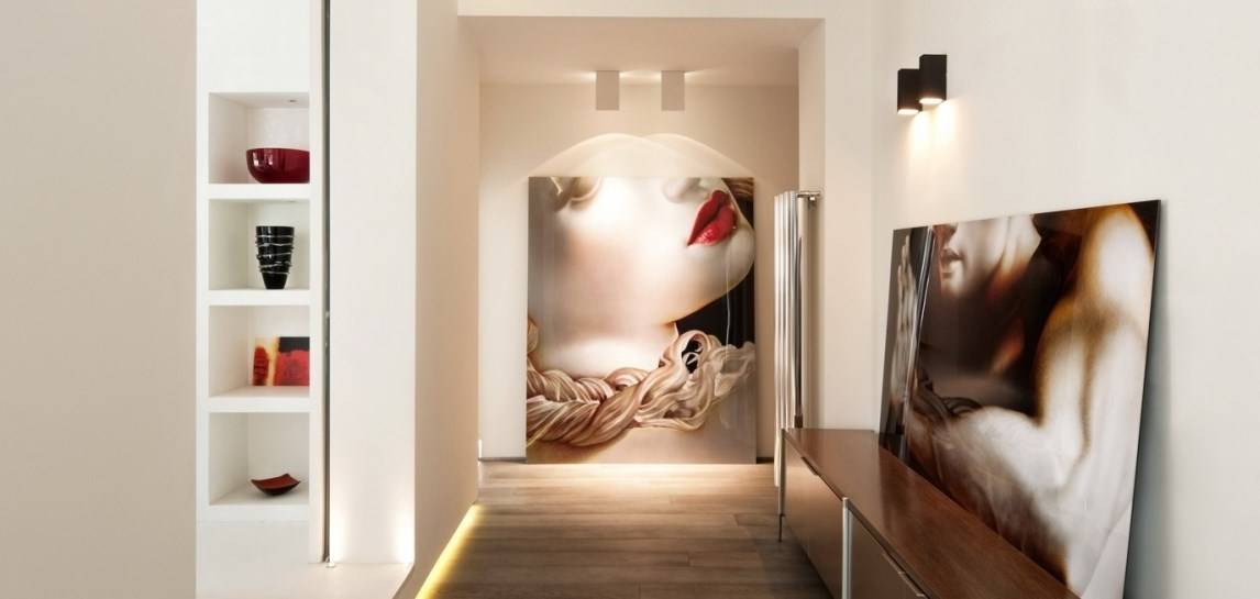 - хорошо смотрятся декоративные ниши в стенах, картины с подсветкой.