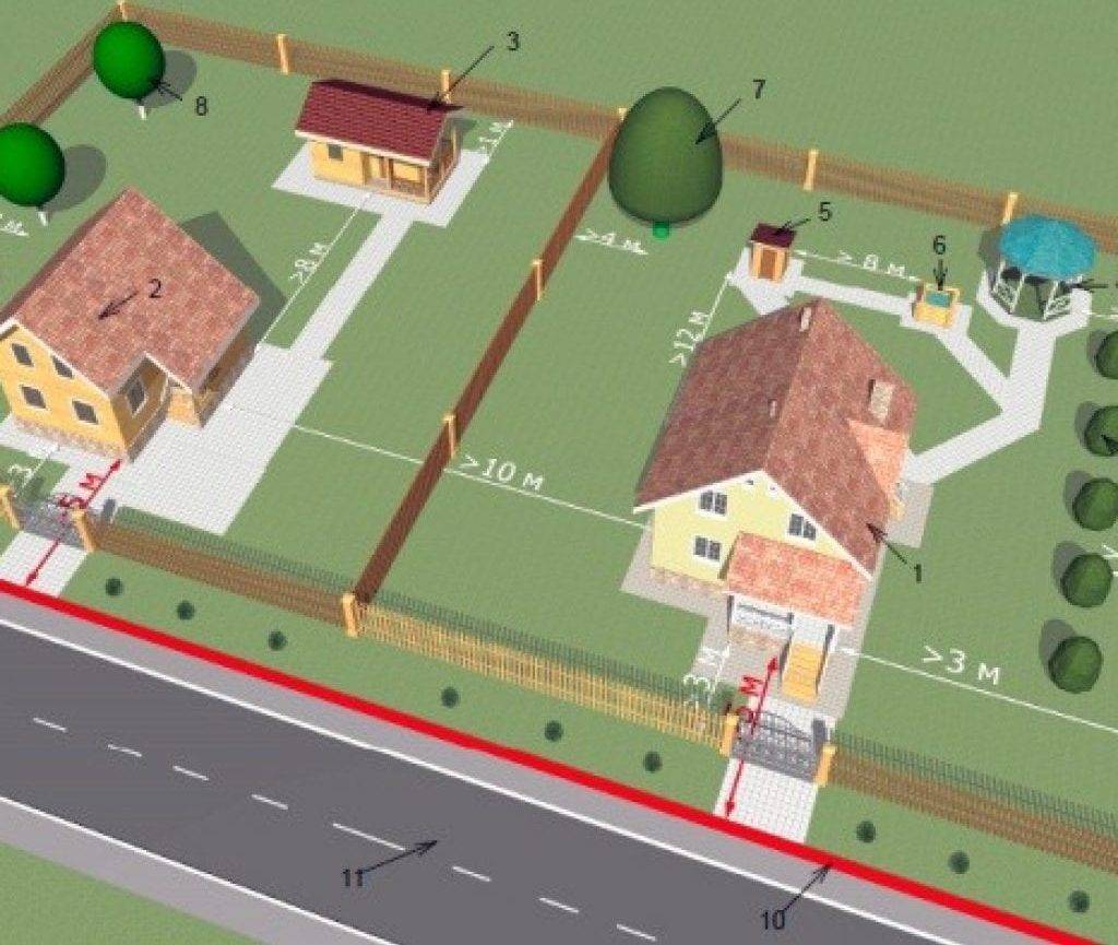 Все эти условия могут быть изменены сторонами согласованно с учетом законодательно разрешенного расстояния между постройками в зависимости от их материала: