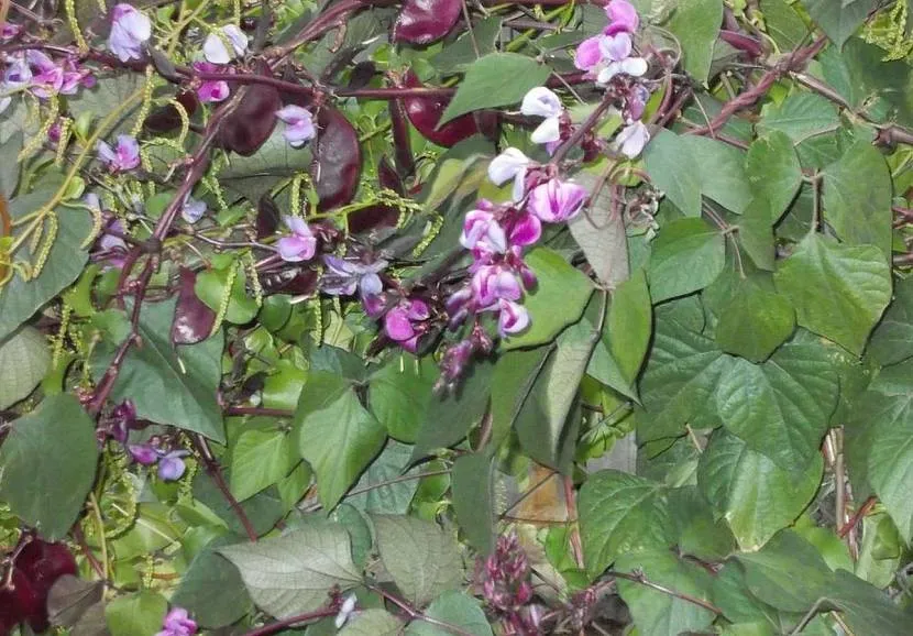 Украсить изгородь помогут растения-многолетники. Декоративная фасоль быстро развивается, не боится плохо освещенных участков, в течение нескольких недель оплетает сетку-рабицу или шпалеру. Культура чувствительна к заморозкам, поэтому ландшафтные дизайнеры советуют выращивать вид из рассады в конце весны.