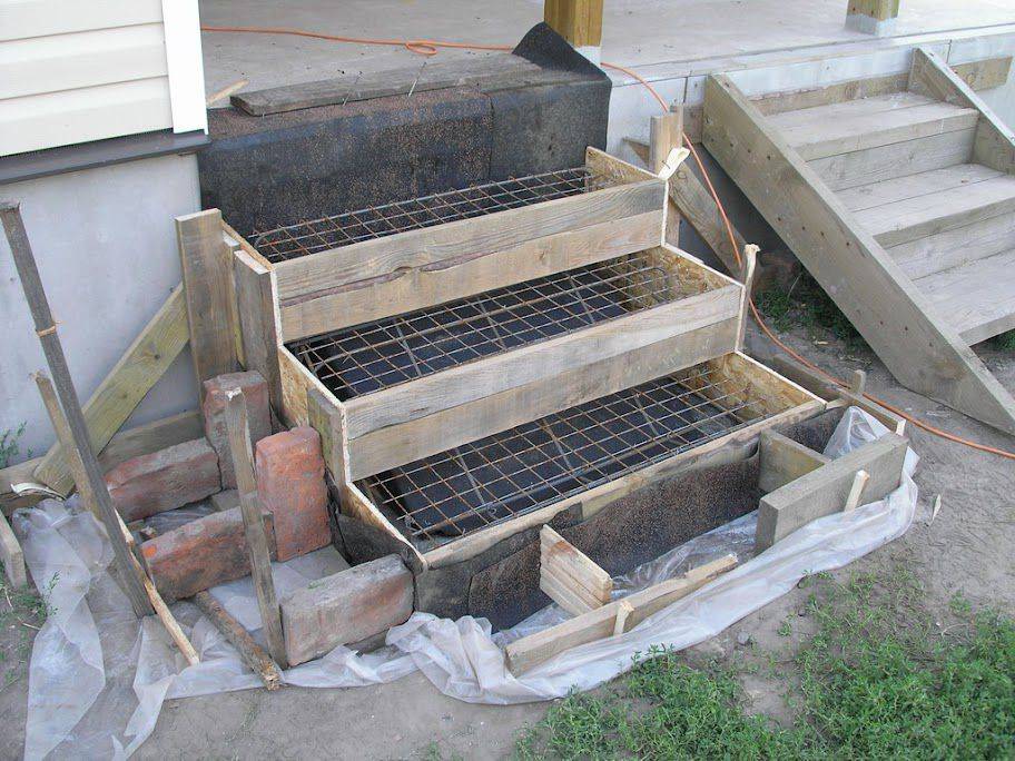 Ступени обязательно армируются. При этом арматура должна быть уложена и установлена во всех трех плоскостях. Еще более удобный вариант – сварить каркас в форме будущей лестницы и построить опалубку вокруг него. Делайте, как вам больше нравится.