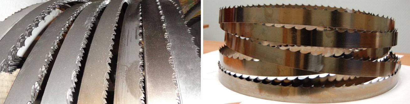 - Главное – качество режущего края. Плюс пильного полотна из твердой стали – оно долго остается острым и сохраняет развод даже при работе с искусственными древесными полотнами. Минус – если уж пила затупилась, то ее необходимо менять, заново наточить не получится. Противоположные твердым полотнам достоинства и недостатки имеют полотна из более мягкой никелевой стали. Такие ленты можно многократно затачивать, делать им развод и даже сварить, если они порвутся. Однако и тупятся никелевые пилы быстрее.