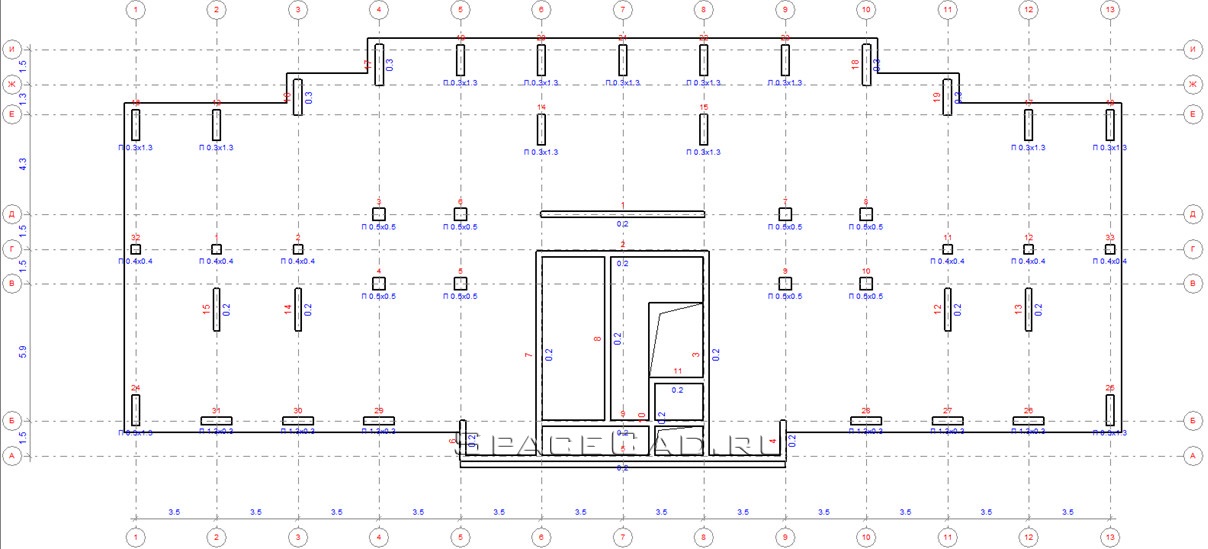 - несущие колонны, сечением 400х400 мм, 500х500мм;