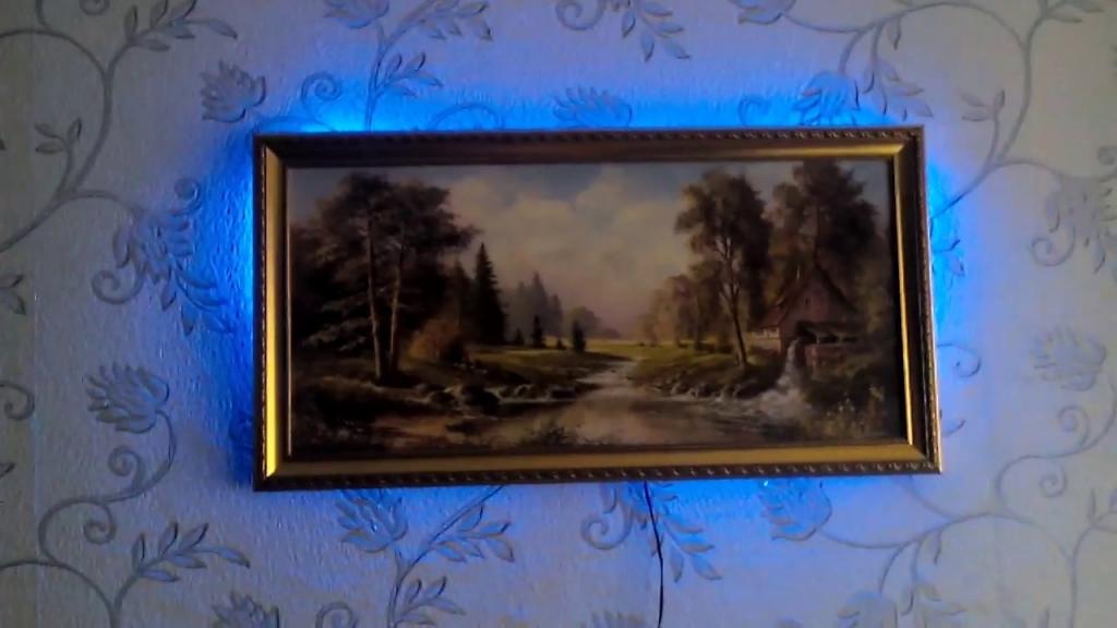 Ниже представлено видео о том, как сделать светодиодную подсветку для картины. Оно непременно поможет освоить процесс домашнему мастеру.