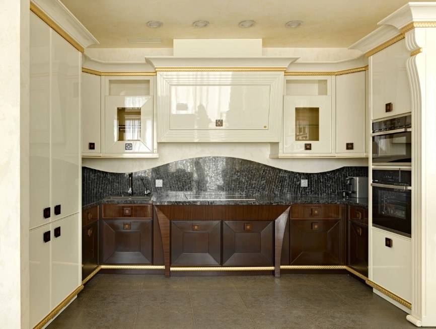 - Светлые глянцевые фасады большой площади.