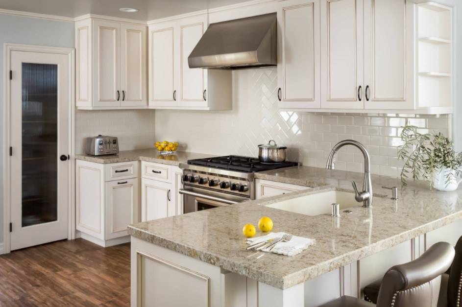 Кардинально изменить внешний вид можно заменив существующие столешницы. Ламинат является самым экономичным в покупке. Если у вас есть свободные деньги, рассмотрите дополнительные услуги, такие как тепловые стержни, которые могут быть установлены на поверхности для постоянной подставки под кастрюли или встроенной сливной доски.