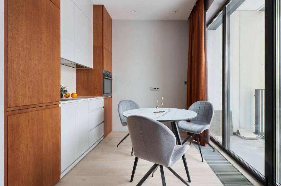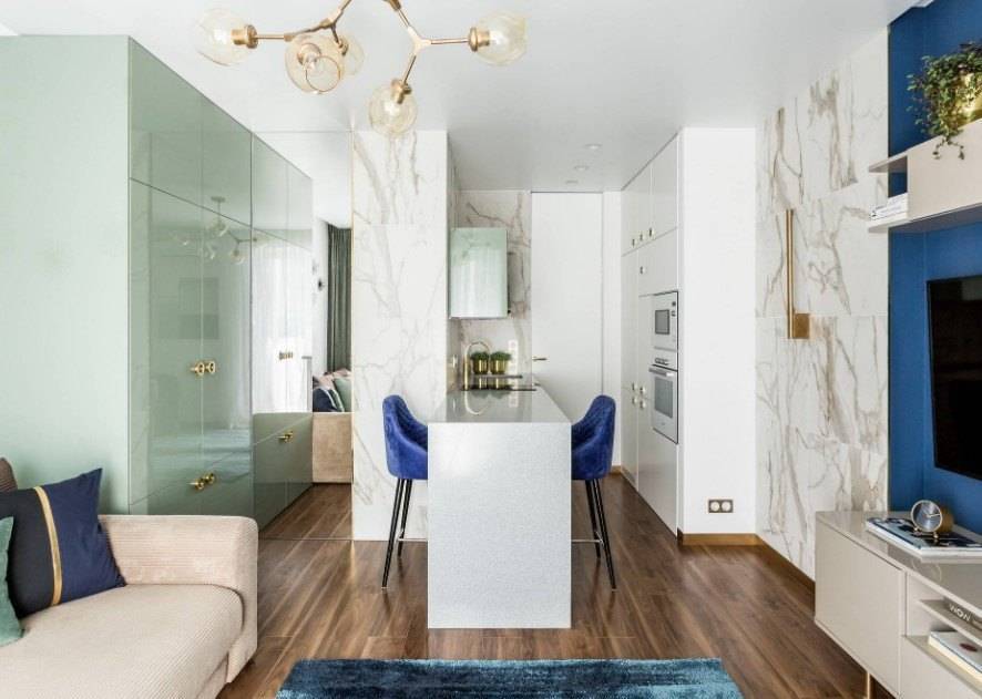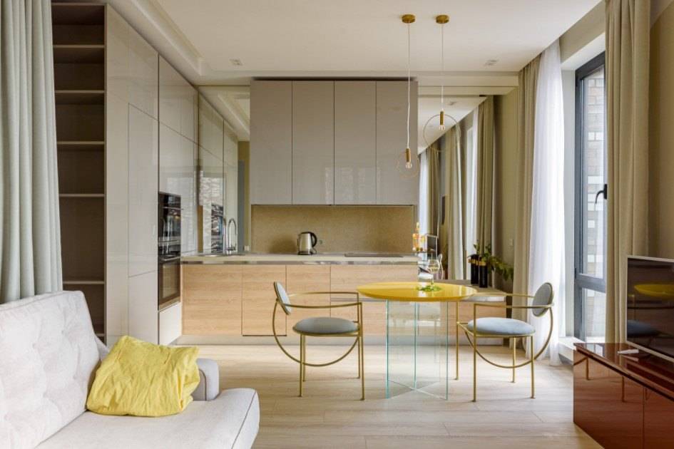- по возможности выполните перепланировку, соединив кухню и гостиную. Потребуется разрешение от специальных органов.
