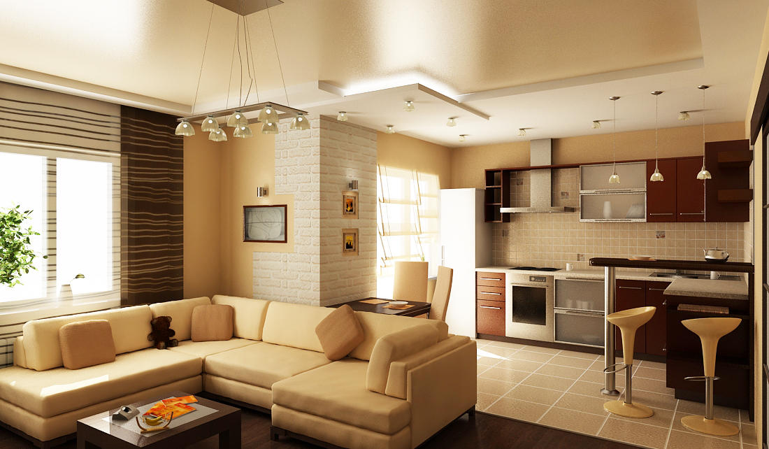 Гостиная с кухней может быть совмещена и декорирована с разными недочетами