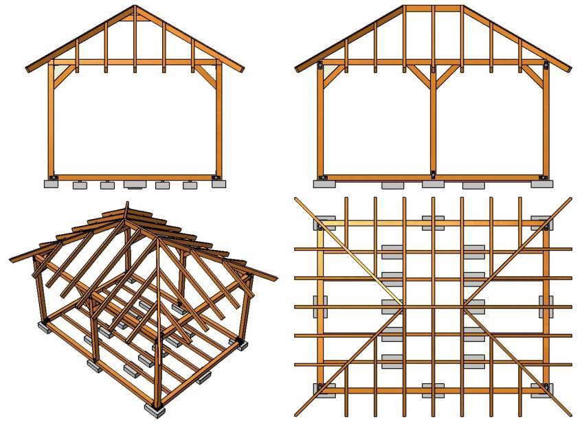 В деревянных каркасных строениях вся стропильная система опирается на верхнюю обвязку основания здания (в срубах – прямо на верхние венцы конструкции).