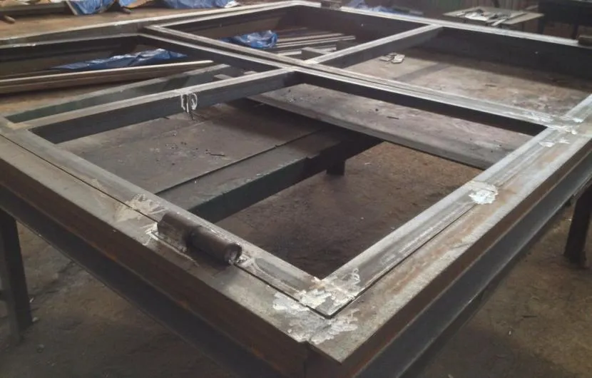 Стальные профильные трубы нарезают по размерам панелей. Их раскладывают на ровной поверхности, земле, чтобы сделать раму. Секции фиксируют друг к другу петлями, соединяют так, чтобы не было перекоса.