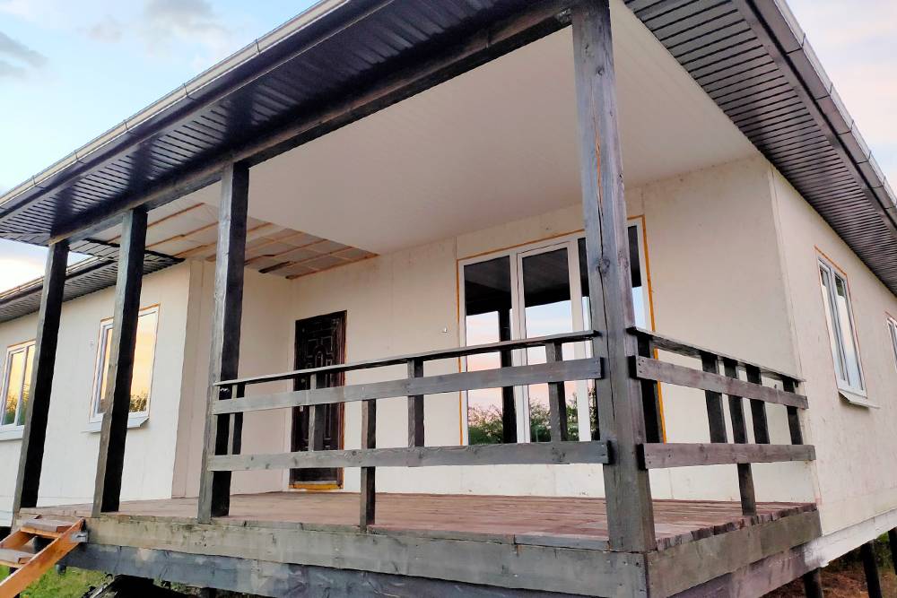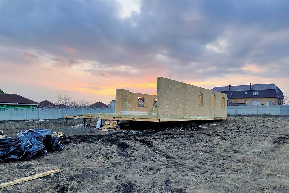 Еще нужно доработать водосточную систему: сейчас труба только проведена по крыше, но не опущена к земле. Надо доделать фасад, сделать отмостку вокруг дома, чтобы все выглядело аккуратнее и красивее. Продумать и воплотить внутреннюю отделку. После — заняться документами: ввести дом в эксплуатацию, перевести участок в собственность.