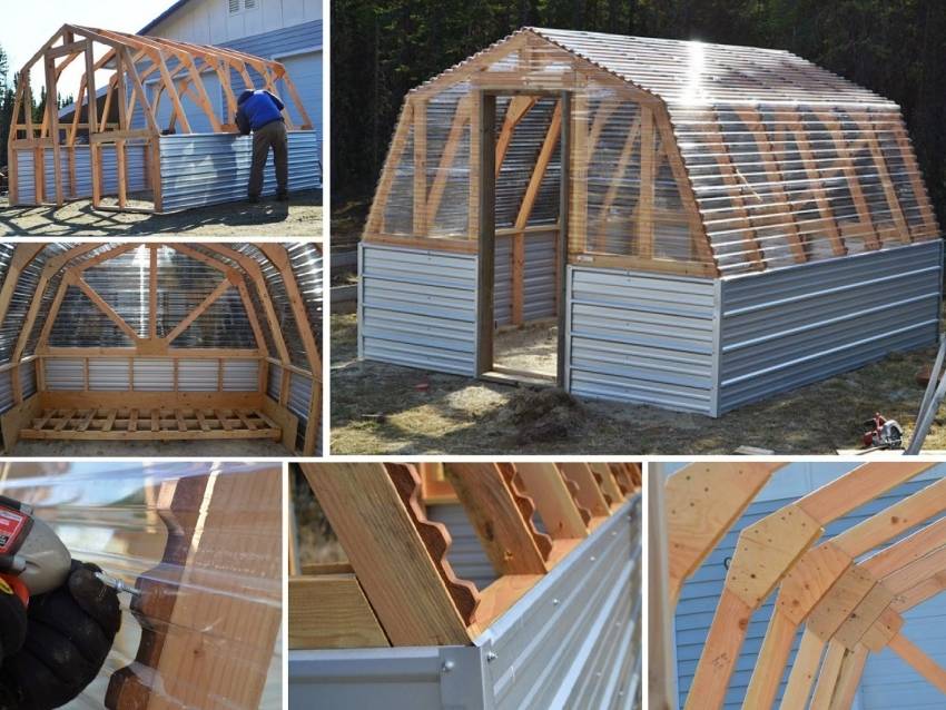 Каркас из металлических трубок легко выдержит ветровую и снеговую нагрузку. Прослужит намного дольше деревянного каркаса, но металл нуждается в антикоррозийной обработке. Благодаря атмосферным осадкам в виде снега, дождя в пазах или стыковочных узлах быстро появляется ржавчина.